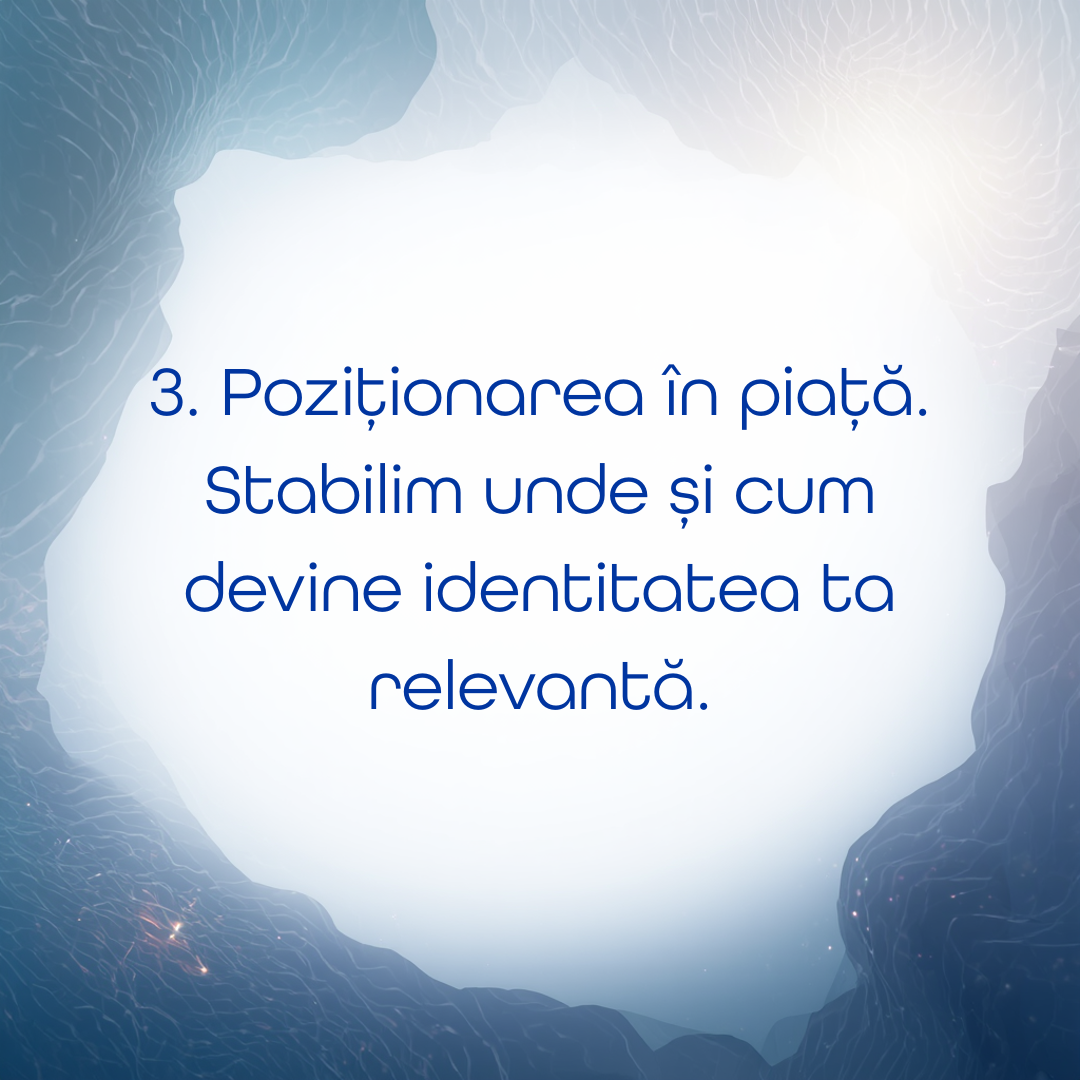 Identitate -> Poziționare -> Reputație -> Oportunități ->